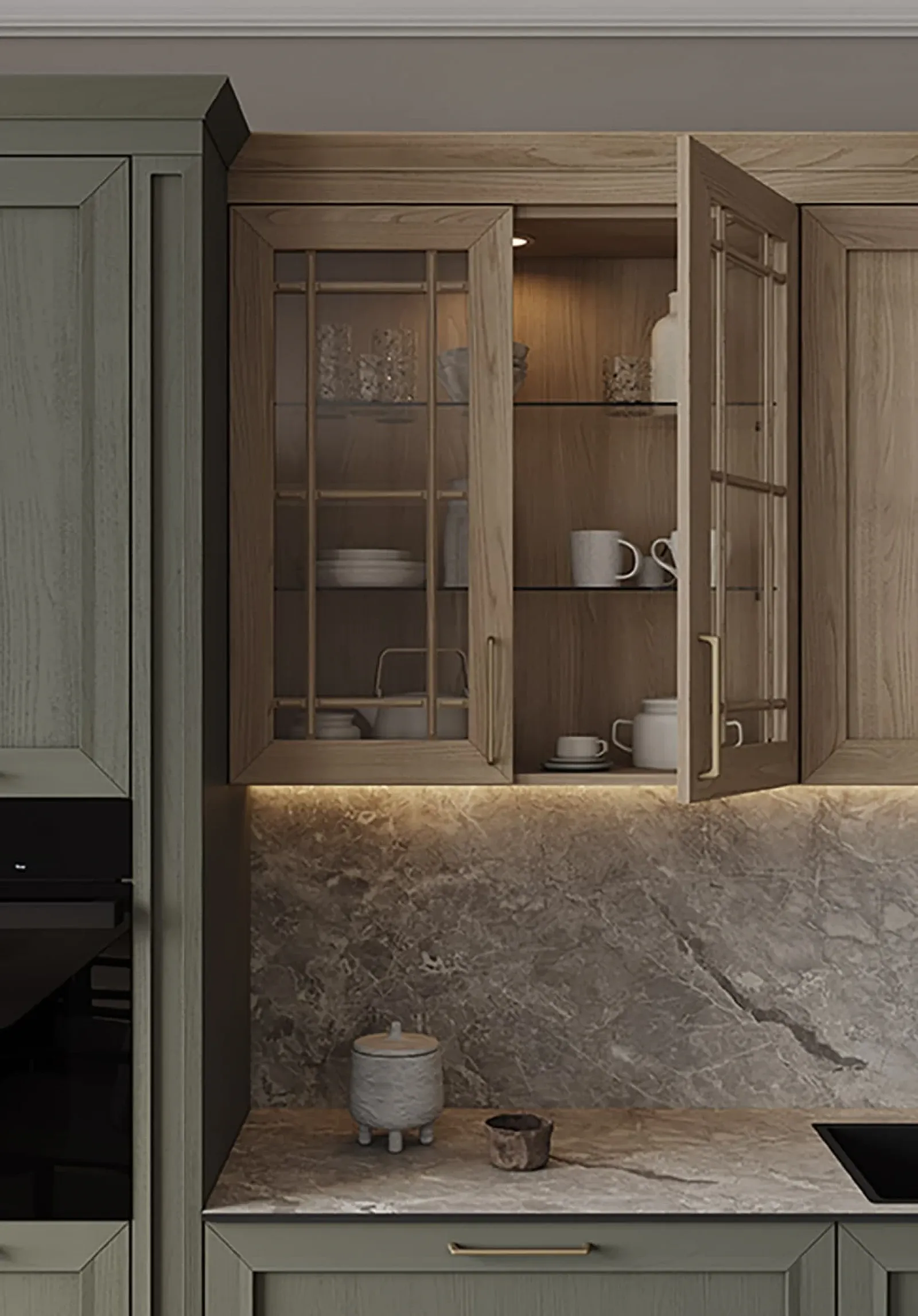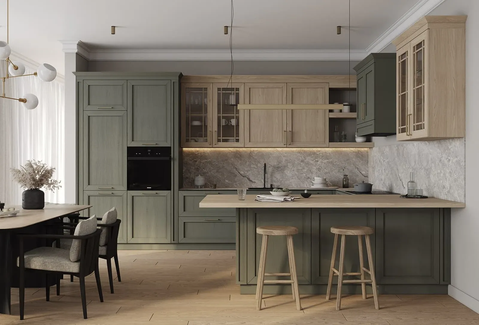 Фасады: Т763 Натуральный дуб, цвет NCS S 6010-G50Y / #183 (масловоск Бесцветный)